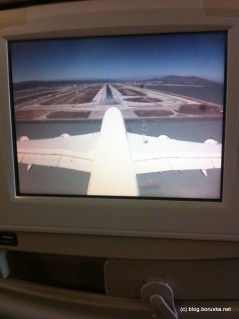 Inženýři Airbusu byli asi trochu hračičkové, protože každý pasažér má kdykoliv během letu možnost si na displeji na svém sedadle volit pohled ze tří kamer na letadle, které poskytují žívý obraz z letu: